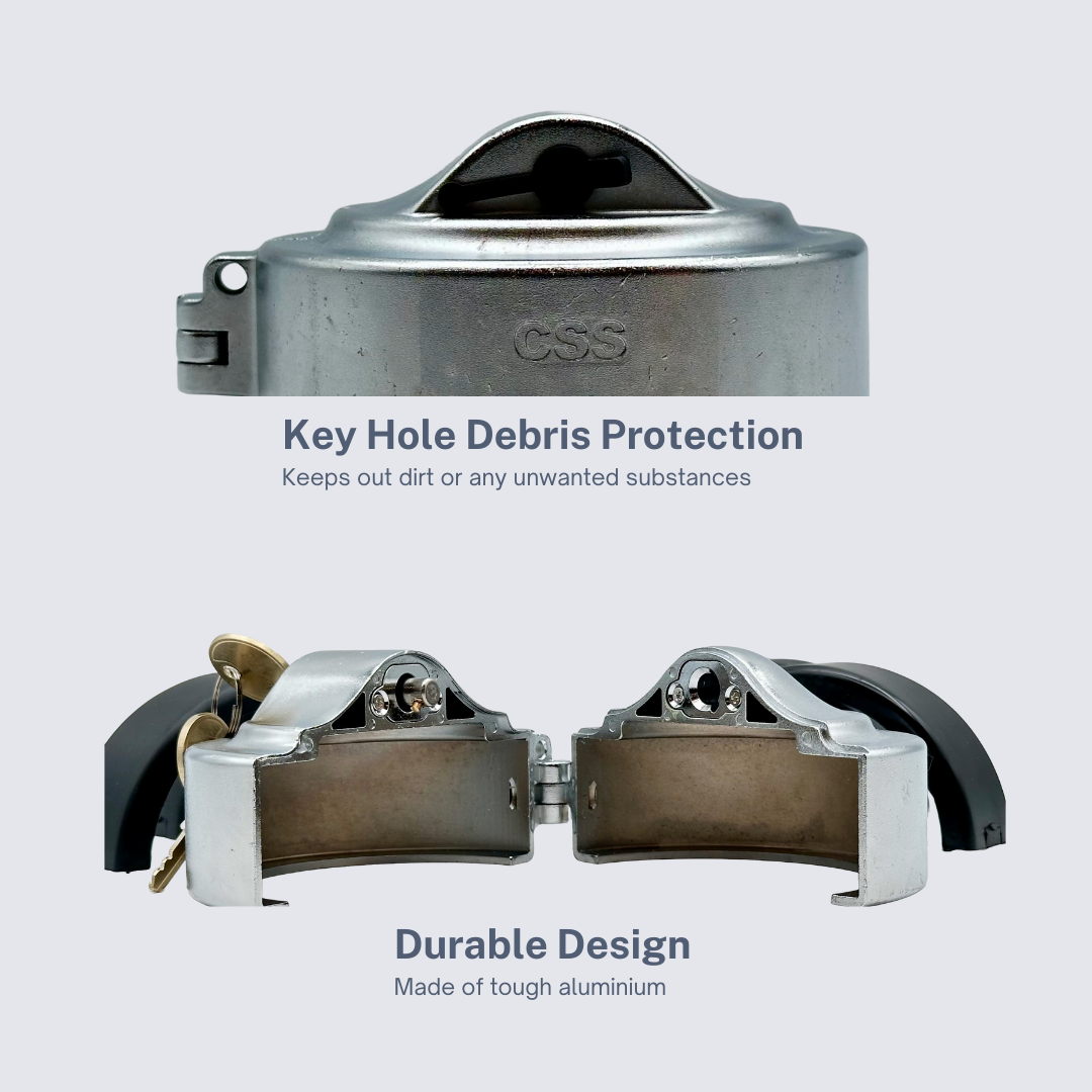 Caplok locking fuel cap cover protects against fuel theft and contamination. The cover fits over your existing fuel cap.